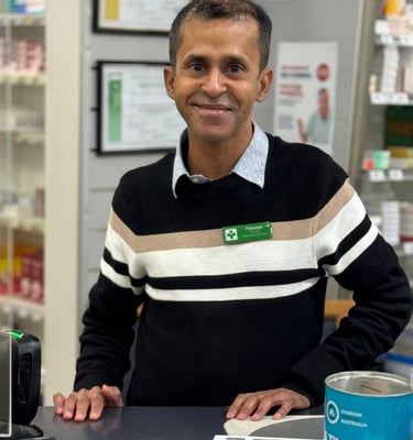 Hassan Hashmi is a dedicated Dispensary Technician currently working at TerryWhite Chemmart Cumberland Park Pharmacy, with over 8 years of experience supporting pharmacy services in regional and remote communities across South Australia, including Coober Pedy and Port Pirie.