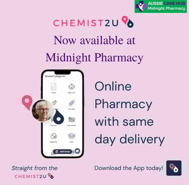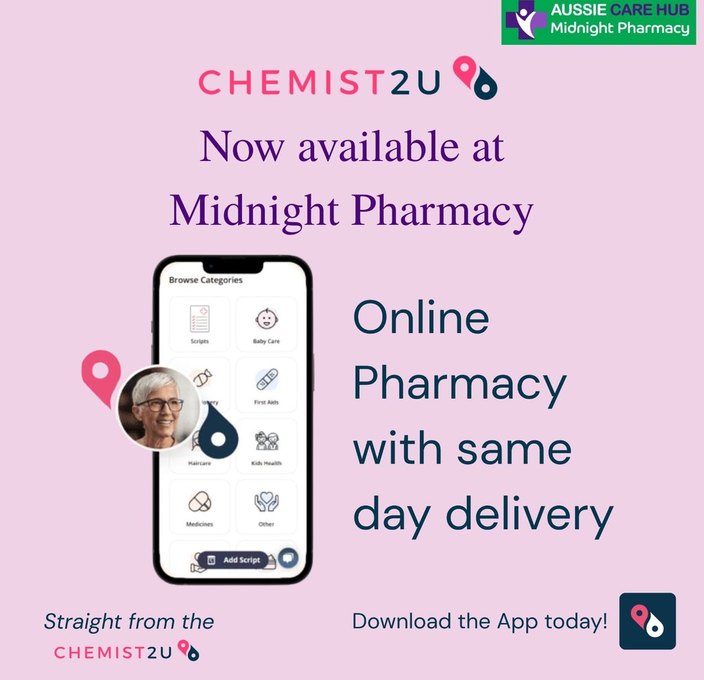 Chemist2U is now available at Aussie Care Hub Midnight Pharmacy in Adelaide. Enjoy same-day prescription delivery, easy online ordering, and trusted after-hours care — all from your local pharmacy.
