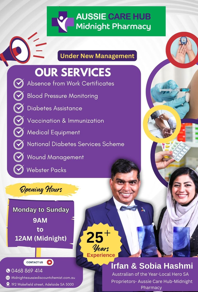 Aussie Care Hub provides exceptional late-night services! Their team is professional and efficient, and I appreciate the convenience of home delivery for my prescriptions.